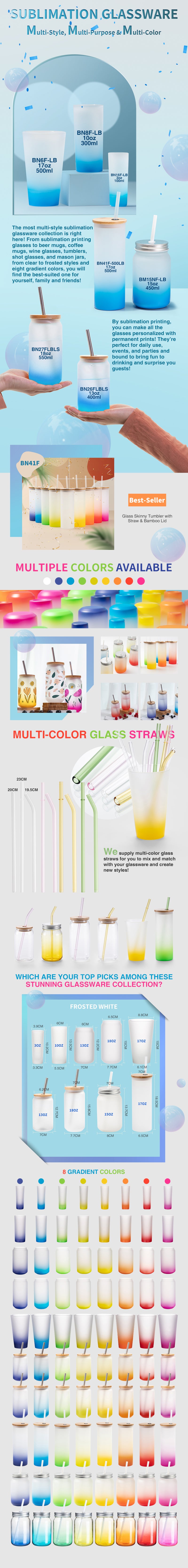 Item Name: 13oz/400ml Sublimation Blanks Glass Can Tumbler with Bamboo Lid Gradient Purple