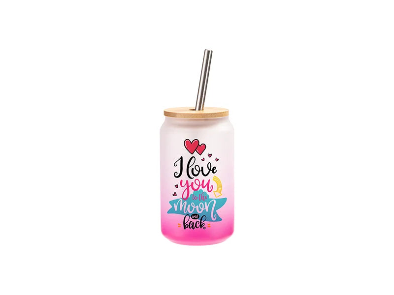 13oz/400ml Sublimation Blanks Glass Can Tumbler with Bamboo Lid Gradient Purple