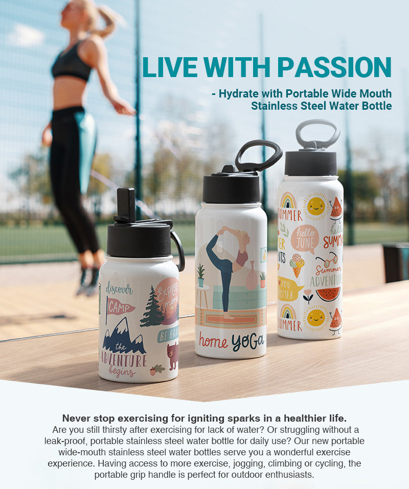 17oz/500ml Stainless Steel Water Bottle w/ Wide Mouth Straw & Portable Lid (White)