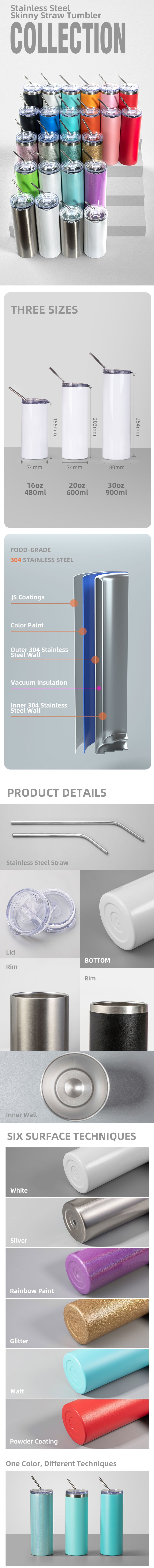 Item Name: 20oz/600ml Sublimation Glitter Stainless Steel Skinny  Tumbler with Straw & Lid(Gold)