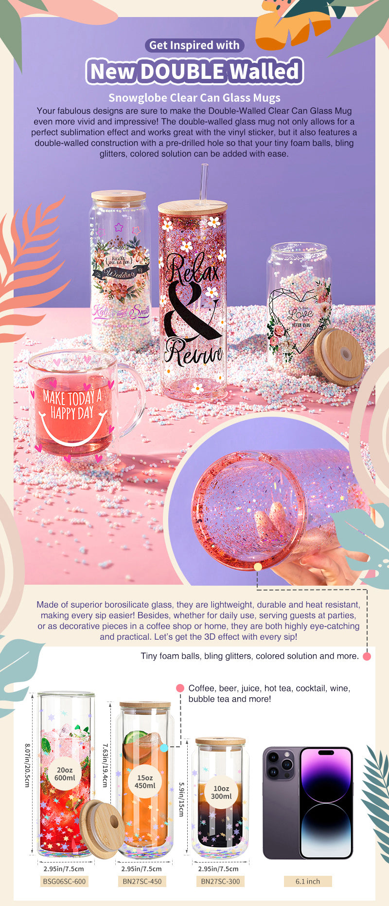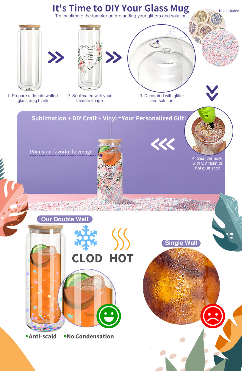 Sublimation Blanks 18oz/550ml Clear Iridescent Glass Can with Bamboo Lid
